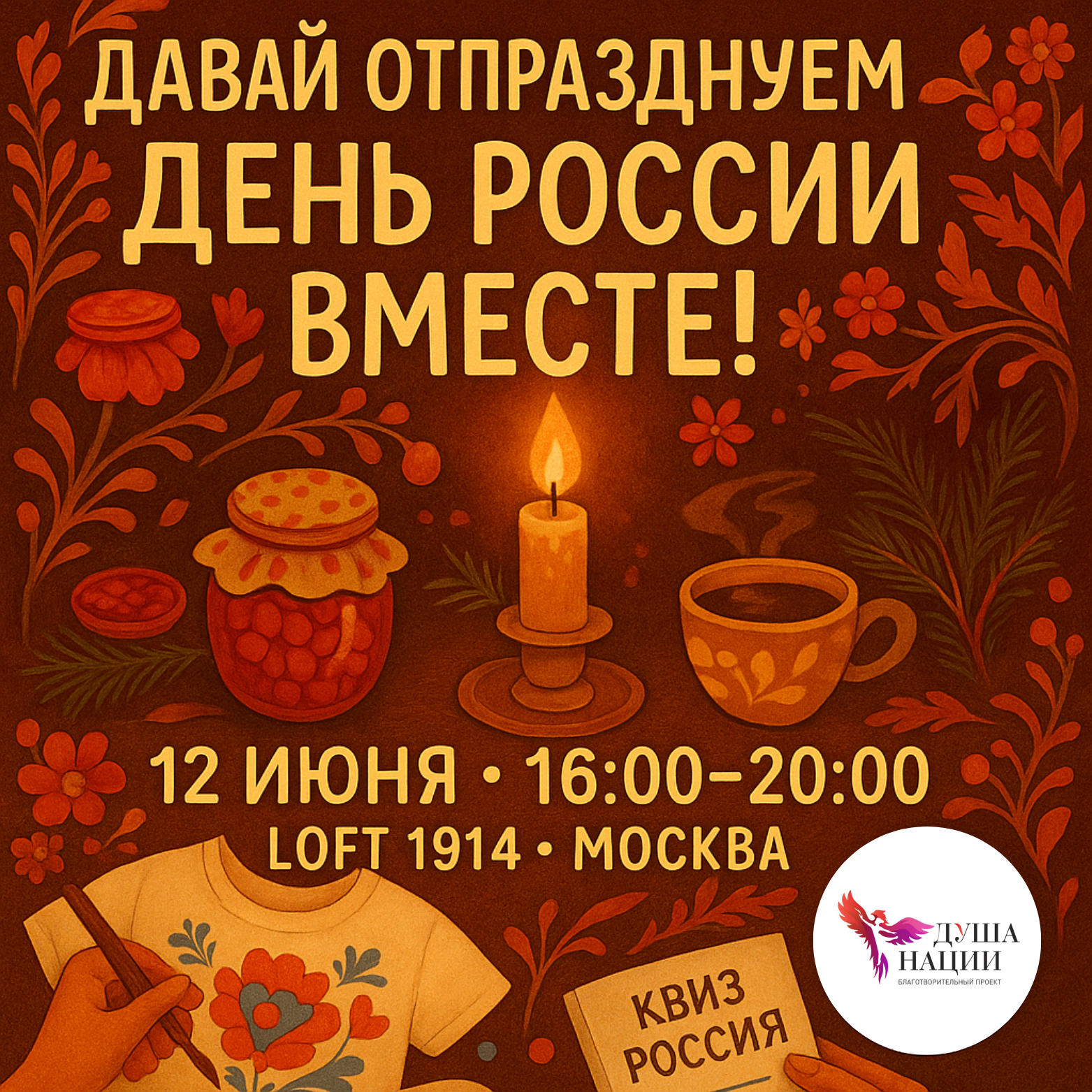 Приходи на вечер от благотворительного проекта «Душа Нации» — и проживи День России по-настоящему.